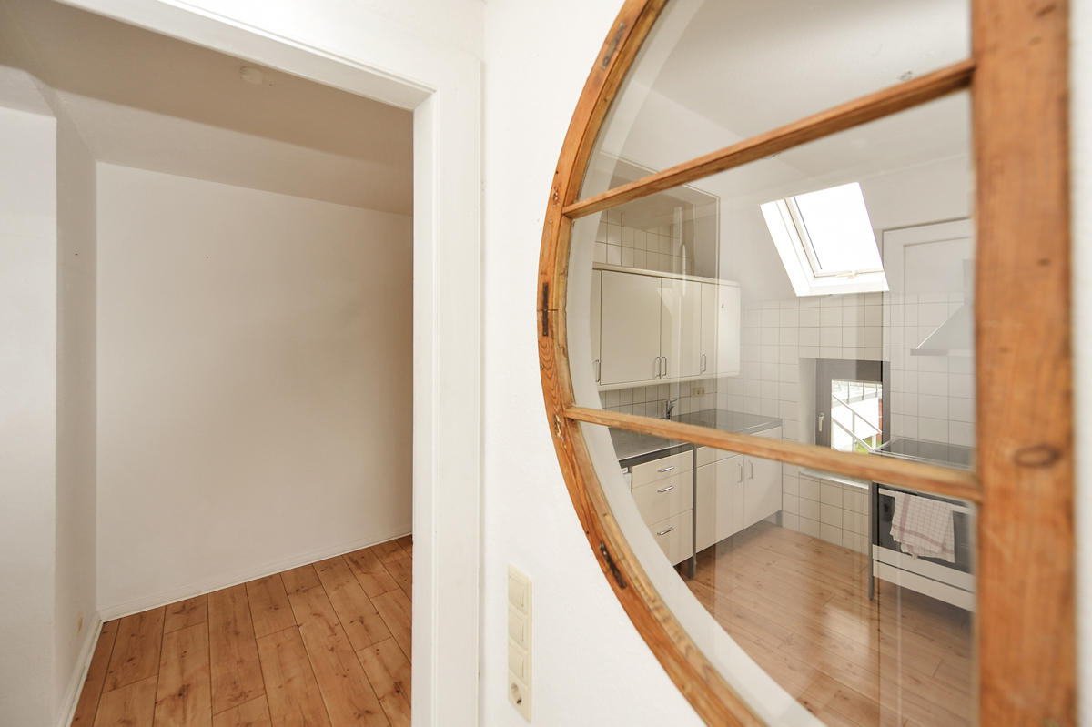 Eine glückliche Fügung: separater Eingang zu einem persönlichen Reich, eingebunden in den Rahmen der Hausgemeinschaft. Über eine Außentreppe gelangt man auf einen Balkon mit Morgensonne und Kanalblick. Und von dort in eine kleine variable Wohnung mit einem schönen Badezimmer. Perfekt.